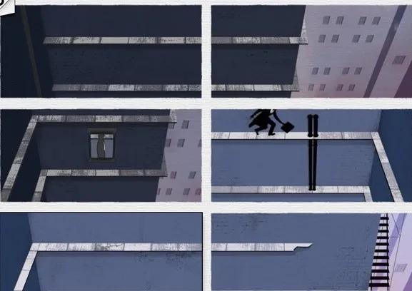 按照下图所示的致命框架攻略移动插画的位置,这样主人公便可以顺利躲过警察的追捕并且借助左下角图片上的钩子滑到最后一幅图上,避开那些讨厌的木棍。