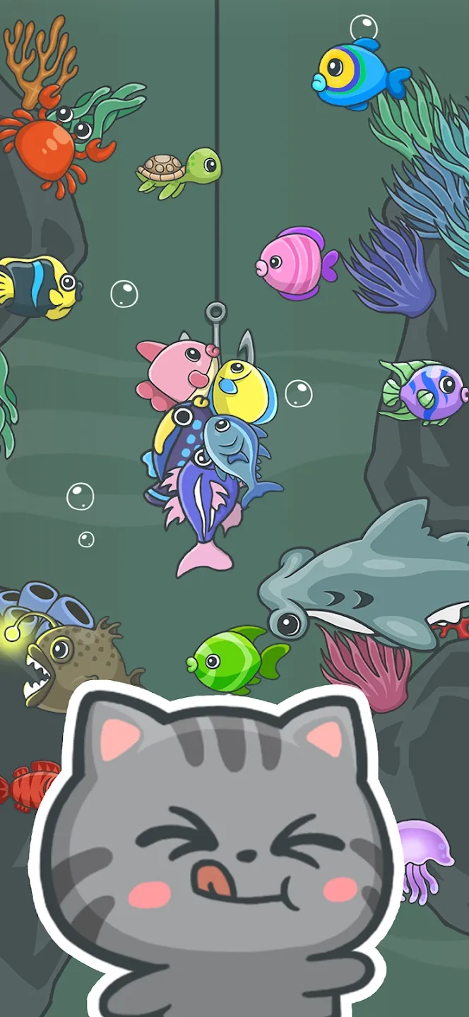 4. 支持离线挂机收益,上线收获渔获,实现轻投入重享受,钓获的鱼可出售换金币,用于升级钓具等,还能打造水下生态博物馆,解锁鱼类科普档案等。