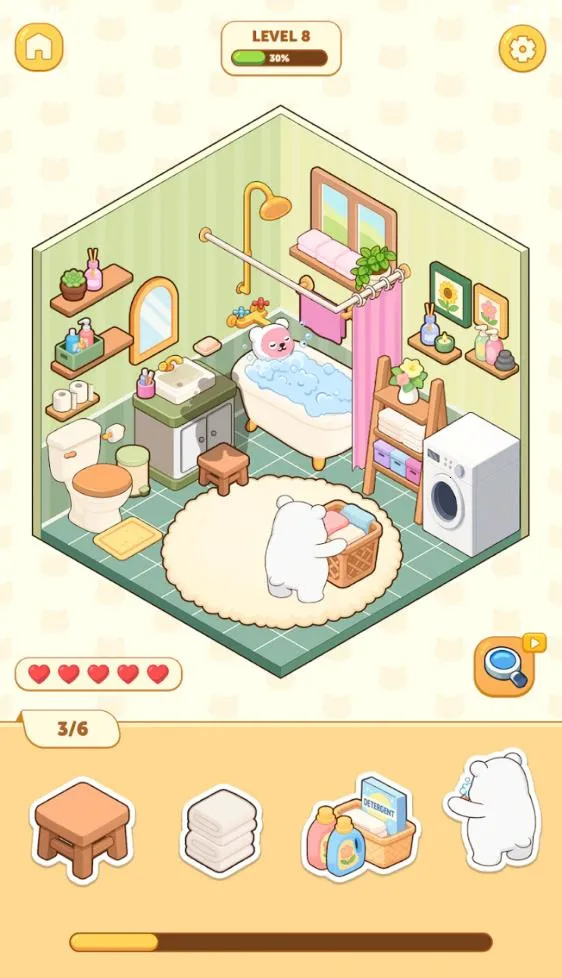 3. 初次进入有玩法指引,能快速上手。每关有对应任务,完成可获奖励。还能参观其他玩家房间获取灵感。