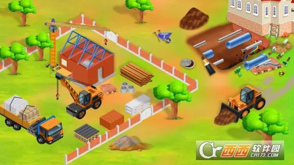 2. 游戏里有多样建造任务,比如操纵起重机安装屋顶、搅拌水泥砌墙等,可按自己想法设计建筑,发挥想象力。