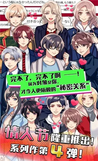 《秘密关系4》是文字恋爱模拟经营游戏,为系列第四部。采用日系画风,通过短讯对话推进剧情。玩家可自由选性别,与多角色互动,回复影响好感,解锁专属剧情,体验隐秘恋爱张力。