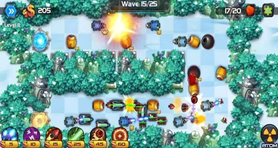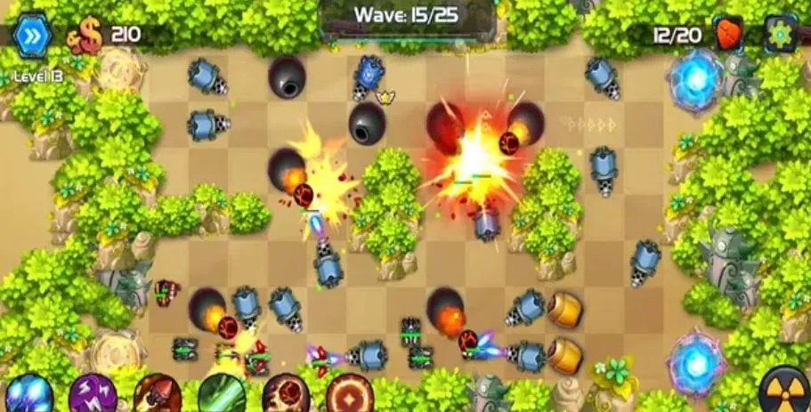 2. 多元防御体系可自由搭配,包含不同功能的炮塔陷阱与可移动作战单位,每种设施都有专属升级分支,衍生丰富战术组合。