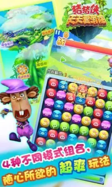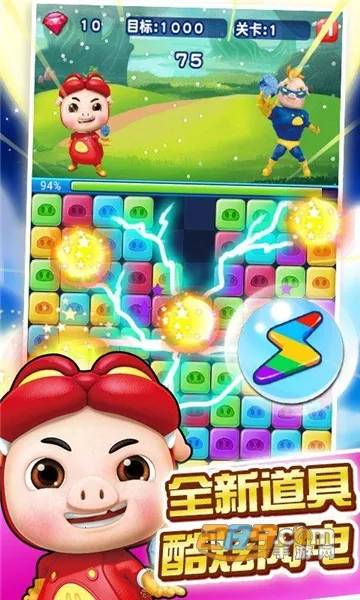 2. 此版本延续经典消除玩法,玩家消除方块时,猪猪侠会对怪兽发起攻击,仿佛与主角并肩作战,增添游戏趣味。