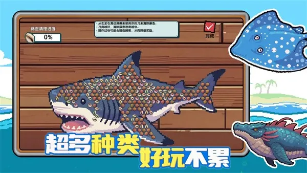 1. 玩法丰富多样,集钓鱼、探索、休闲经营于一体。玩家既能享受垂钓乐趣,升级装备技能,完成闯关挑战解锁奖励,又能在海上餐厅打工赚取金币,还能通过探索不同海域触发隐藏地图,获取独特资源和任务。