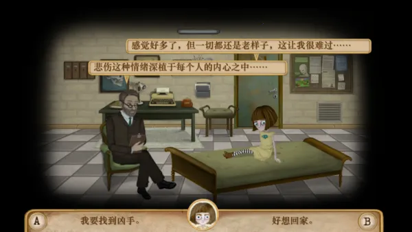 1. 这是一款充满悲伤与诡异的恐怖游戏,主角失去双亲后被送进儿童医院,在此经历一系列离奇事件,开启令人心悸的冒险。