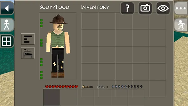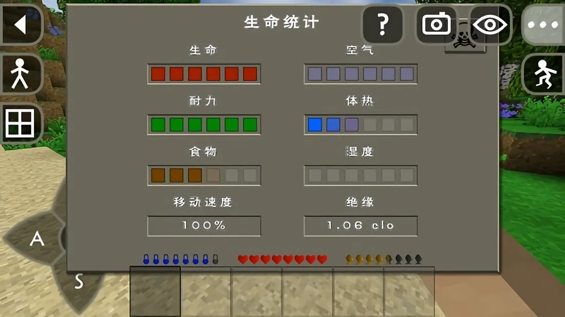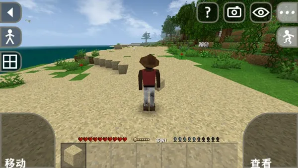 2. **多样的玩法机制**:游戏里有多种地形建筑,如森林、河流、山脉等,提供冒险空间。玩家可操纵角色移动、建造,点击右上角眼睛图标调整视角,点击角色查看信息。还能合成各种物品,从武器到工具,满足生存与战斗需求。