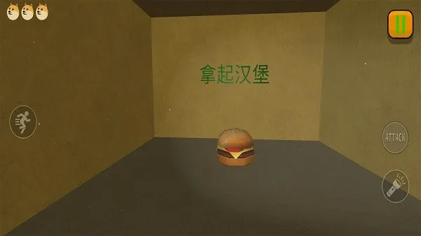 3. 玩家以第一人称视角冒险,收集汉堡通过关卡,过程中要躲避柴犬追捕,每打开一扇门都可能有不同状况,增加了游戏的不确定性和好奇感。