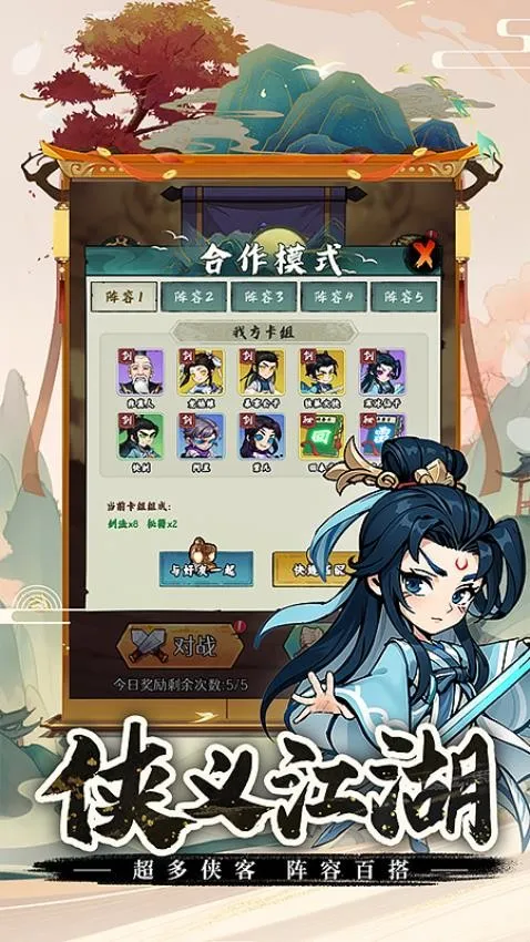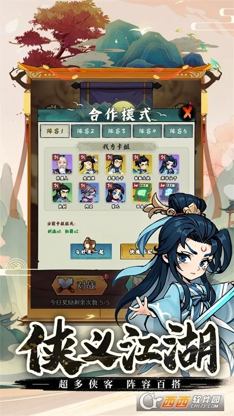 剑侠向前冲2026官方正版是一款武侠主题策略卡牌游戏。新用户登录注册有赠礼,七日签到领奖赏。以挂机闯关为核心,可挑武侠人物、学招式。还有多种福利与攻略,带你畅享武侠战斗。