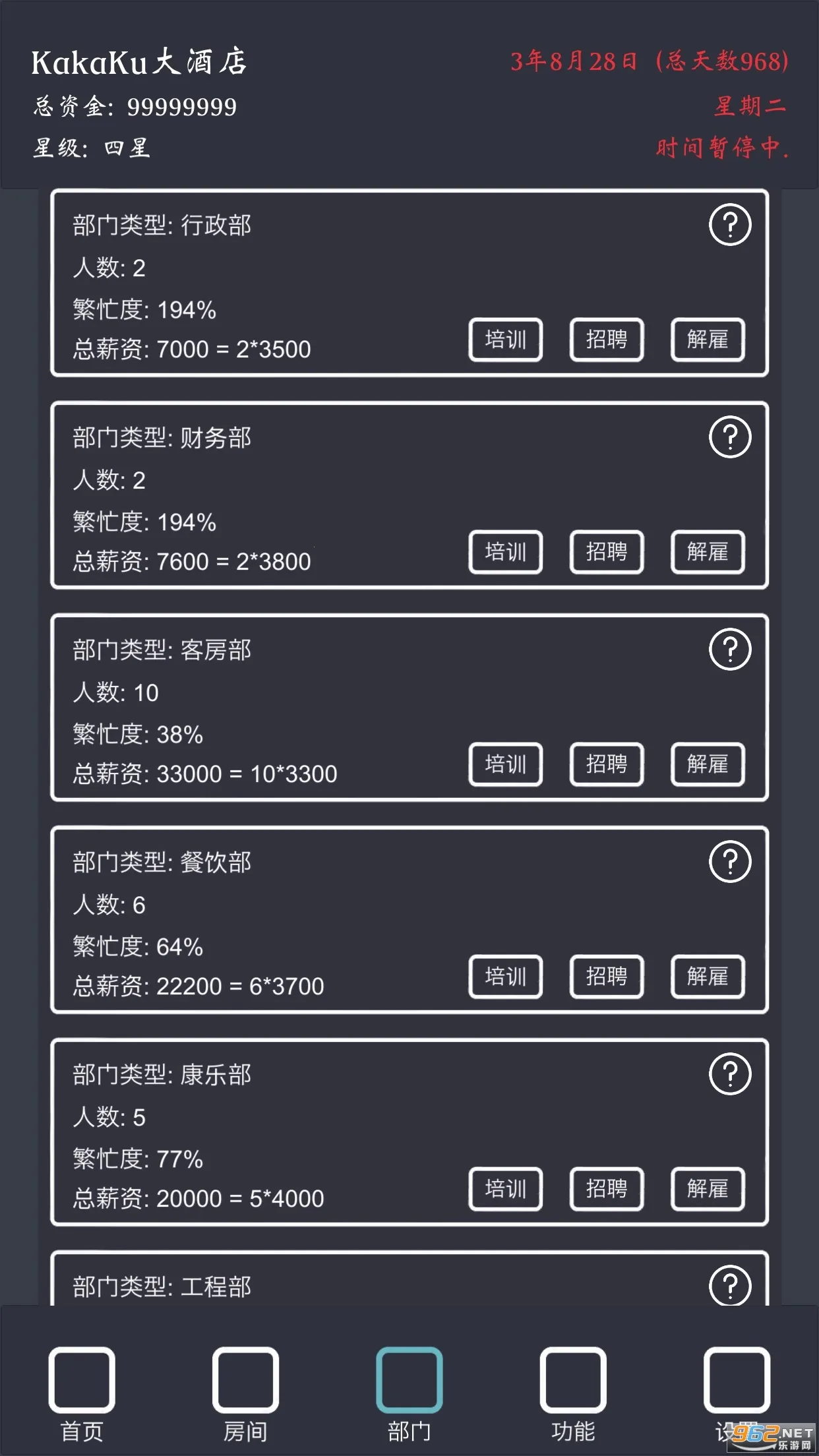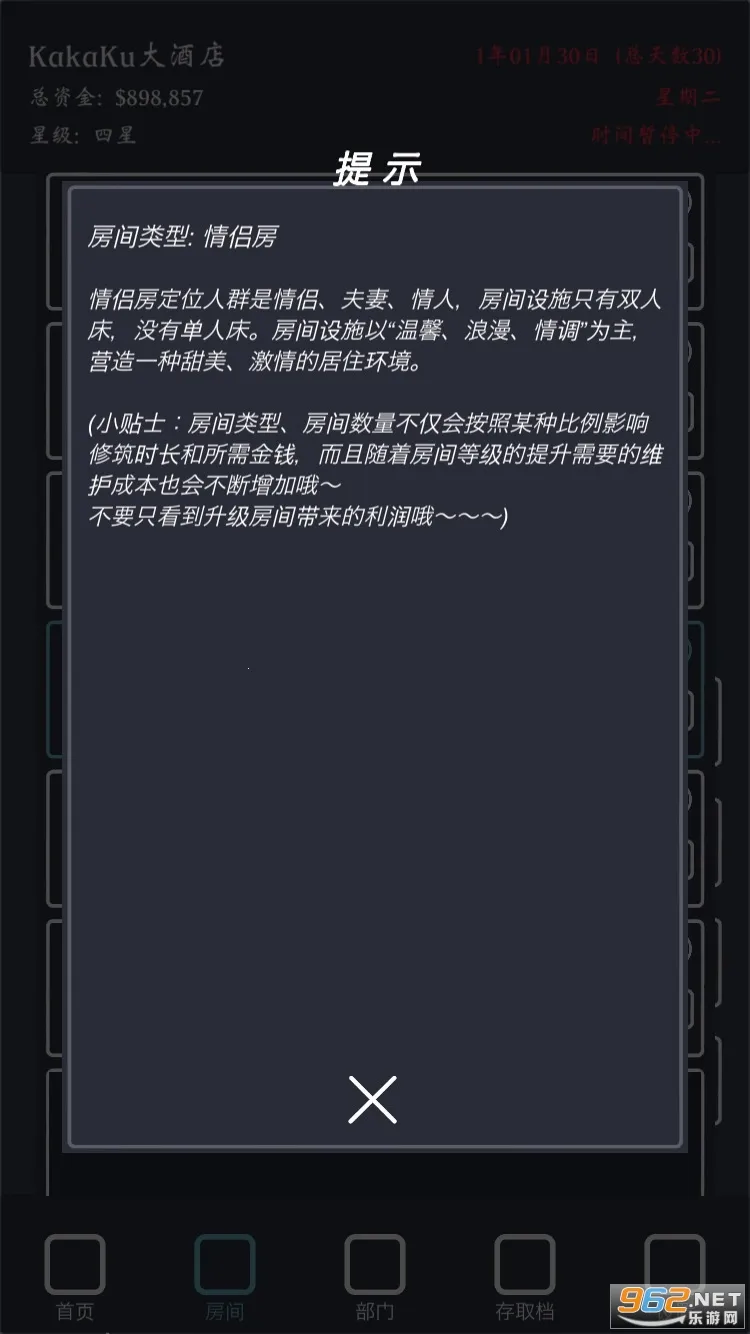 说说我的玩法,初期别开套房、高级大床、行政套房、总统套房,我三星了这些也住不满,然后走量的单人、标间、情侣、大床、街景等切记别升级太高,升级高了房价提升影响入住率,钱多了就慢慢扩张那些走量的房型。
