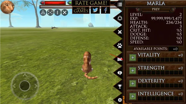 如果你想体验超刺激的猫咪模拟游戏,那这款游戏绝对适合你!它能带你化身猫咪,在开放世界尽情探索。进入游戏经验值直接拉满到99999,能快速熟悉玩法。在超大开放地图里自由奔跑,随心探索各个区域,无拘无束。点击特殊目标可获大量经验,自由分配强化能力。冒险推进能解锁多样猫咪外观造型。利用地图随时查看位置,快速切换探险地。它真实模拟猫咪生活,要维持健康、饥饿、口渴和精力等状态,在多样环境找食物。还有多样战斗与挑战,至少六场Boss战超刺激。家族系统可招募猫咪组成家族,抚养小猫成长。能自由自定义猫咪属性与外观,动态天气与昼夜循环让世界更真实,大型开放3D环境场景丰富,玩法多样。玩这款游戏,就像开启一段充满惊喜的猫咪冒险旅程!