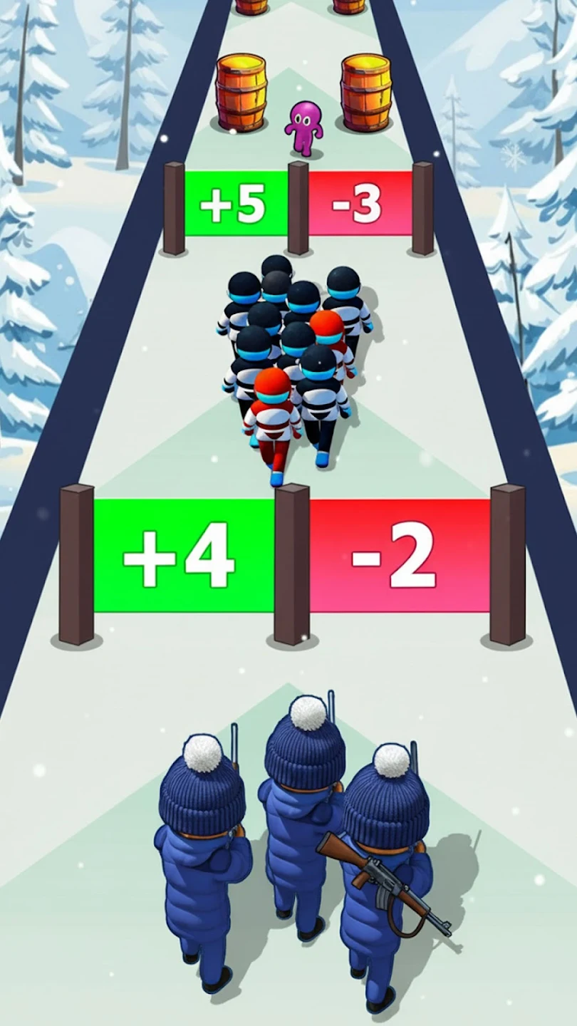 人群冲突大战,一款能满足你需求的精彩游戏。这是一款快节奏火柴人跑酷游戏,充满刺激与挑战。在游戏里,你可以扩充队伍,带领火柴人军队突破障碍、征服敌人。在色彩缤纷的3D世界中奔跑、闪避、战斗,每一次选择都至关重要。每一扇门都可能改变命运,每关都有更强敌人和更激烈战斗。你要在激烈的3D跑酷中射击强盗收集金币,击败各种敌人。它支持离线游玩,无论你是喜爱火柴人游戏、跑酷游戏还是动作游戏,都能在这里获得持续的刺激和奖励。它能让你在闲暇时光尽情享受游戏乐趣,释放压力,沉浸在充满挑战与惊喜的游戏世界中,为你带来别样的游戏体验,解决你想要体验刺激游戏的需求。