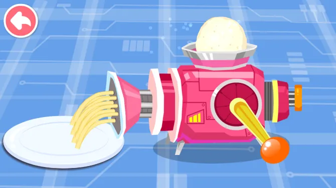 2. 画面设计诱人,音效也很科幻,能激发宝宝食欲,仿佛置身星际厨房冒险。游戏特色十足,转动星球仪炸薯条,旋转飞碟锅熬肉汤,各种魔法厨具带来神奇烹饪体验。