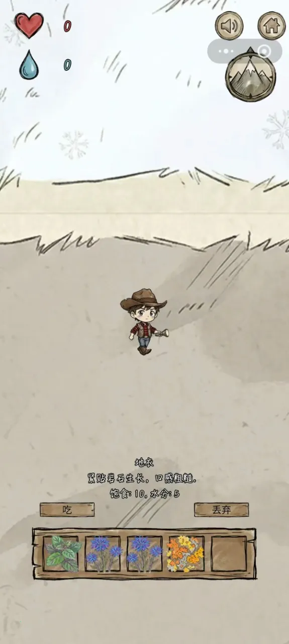 2. **资源寻觅**:在山脉角落寻找草药恢复体力和补充水分,草药有生死双重可能,需敏锐辨别。