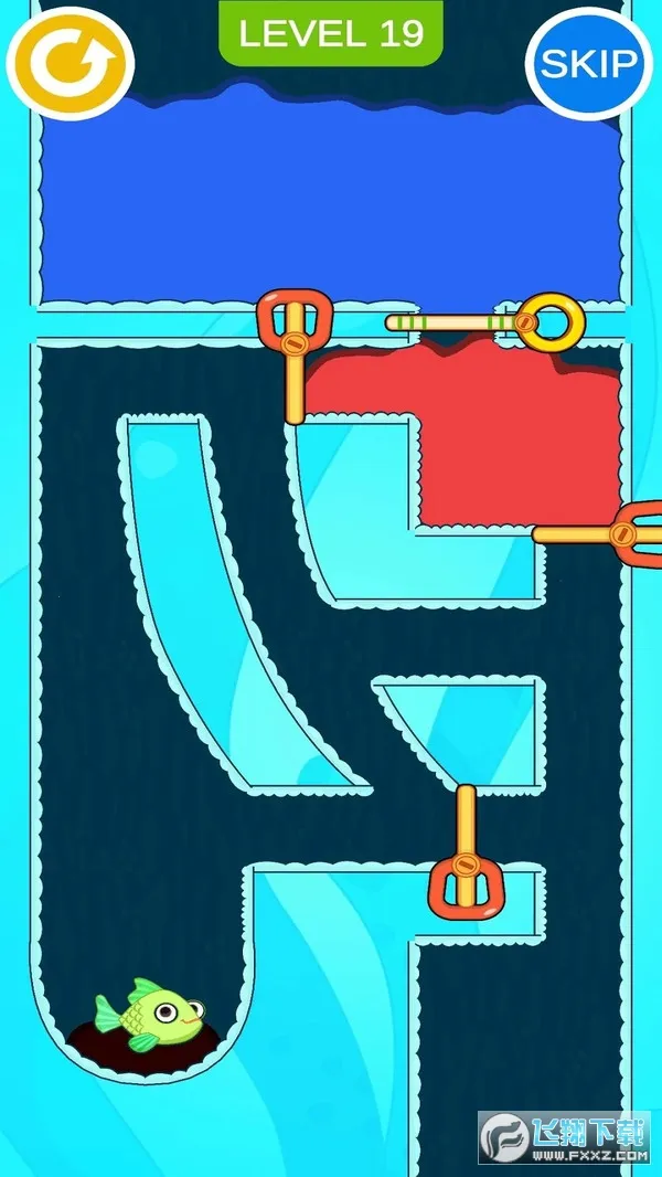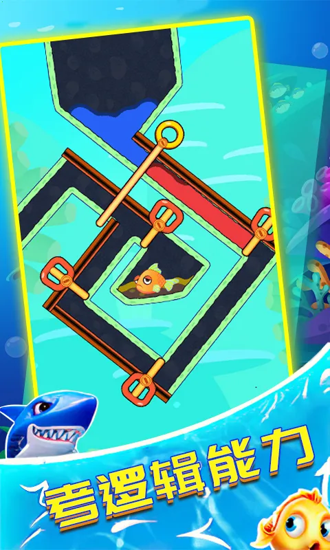 2. 游戏玩法独特,玩家需要通过精准操作别针机关,引导清水安全流入鱼缸,同时规避熔岩毒气等致命威胁,成功营救被困的小鱼。
