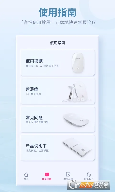 2. 提供视频知识教学,便于用户掌握产品的使用以及康复方法。