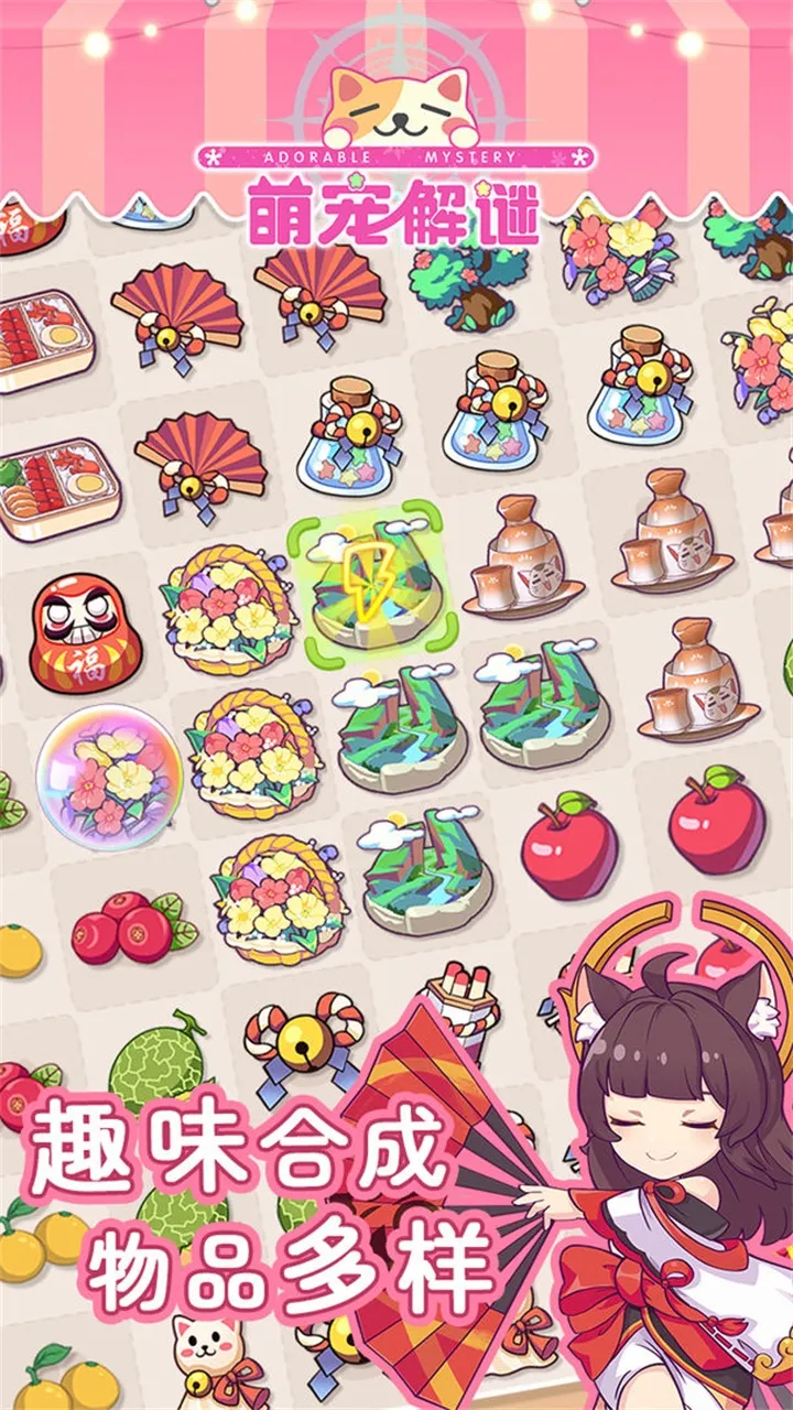 萌宠解谜最新手机版是清新可爱的休闲合成游戏。玩家化身神主,在祈灵大陆召唤守护神抵御恶魔。通过合成道具解锁神灵、探索奇幻事件,还有多样场景与丰富玩法,适合休闲与冒险爱好者 。