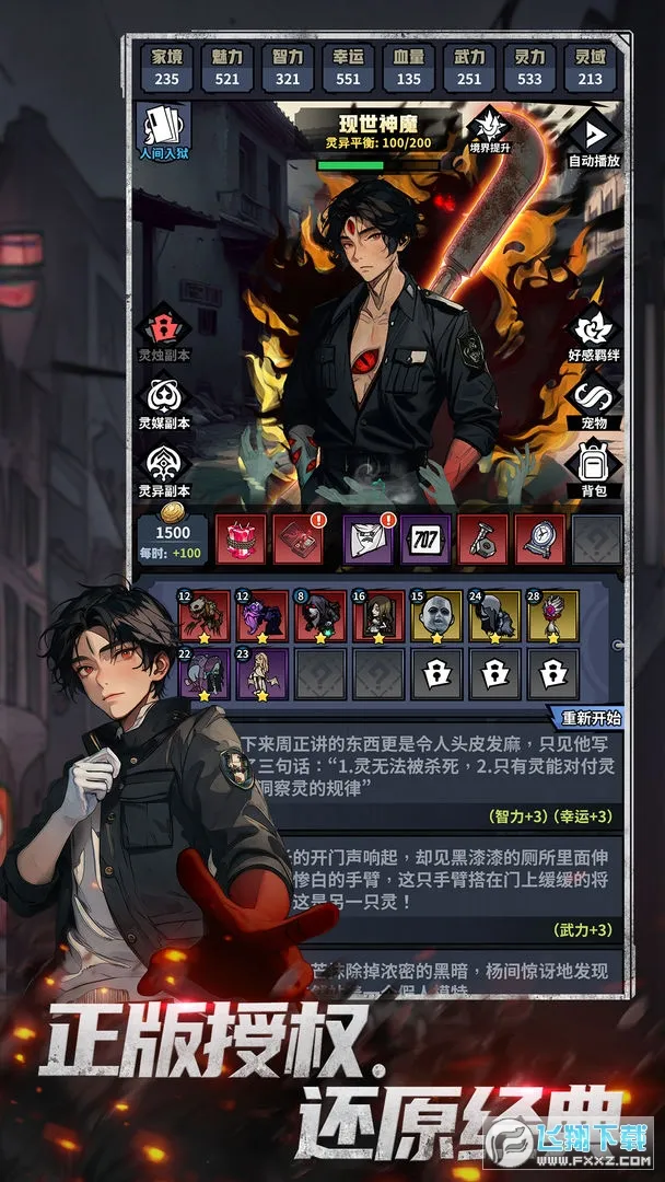 正版授权的《神秘复苏》手游,以诡异题材为背景。普通高中生杨间获御灵之力开启冒险,融合自走棋等玩法,有烧脑剧情、诡秘谜题,玩家做抉择、解谜对抗恶灵,体验恐怖悬疑。