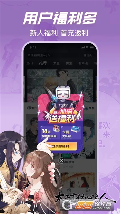 4、阅读体验出色,拥有高清漫画库,首创的卷纸模式等专为手机优化,且能智能推荐符合用户偏好的漫画 。