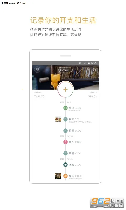 2、趣味拍照记账:支持三秒快拍记账,手势即可激活相机,拍摄购物小票或实物,不仅记录花费,还记录生活,适合社交分享。