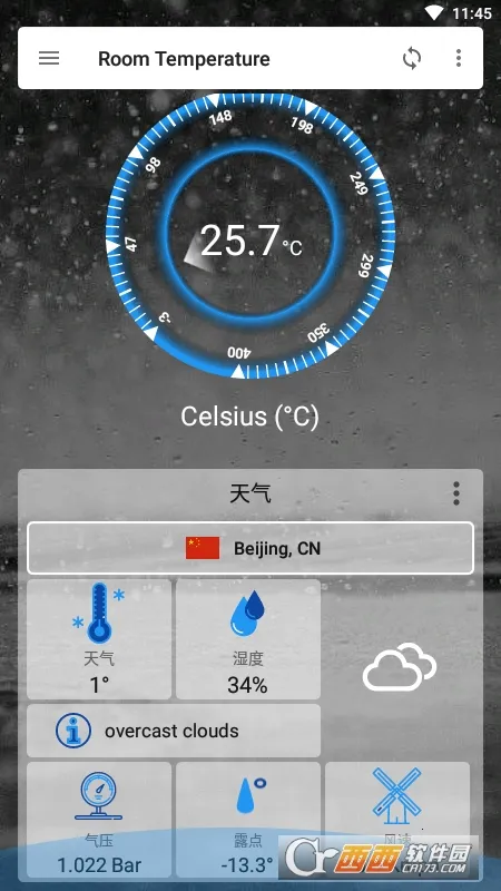 室温温度计安卓版是功能强大的电子温湿度监测软件。能实时监测室内外温湿度、计算体感温度,提供七天天气预报。支持多城市选择,定位精准、数据实时更新,助用户应对天气变化。