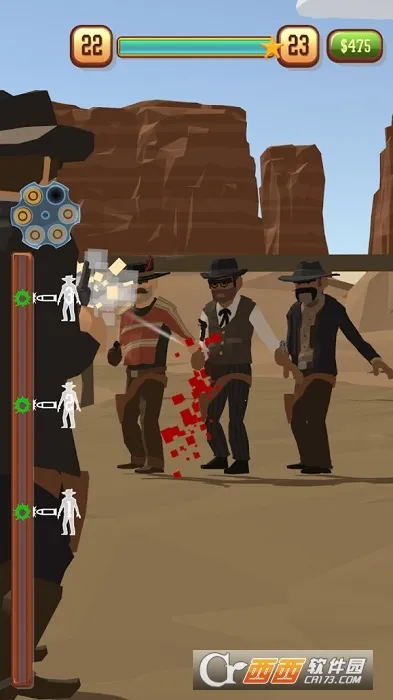2、以左轮枪展开刺激枪战,在消灭敌人过程中尽情释放激情,体验西部牛仔战斗的快感。