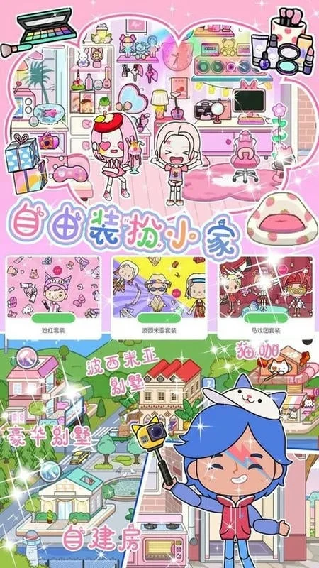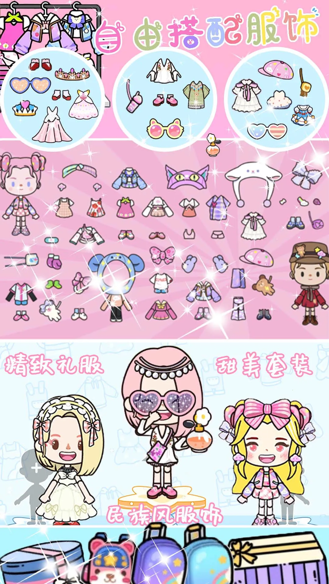 1、丰富装扮:有海量服装及配饰,能满足收集乐趣,搭配出不同风格的可爱萝莉宝贝或时尚校园情侣装扮。