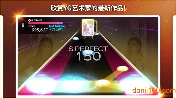 2、音乐曲目多样:游戏收录了YG旗下不同风格的音乐,像BIGBANG、WINNER、BLACKPINK等团队的专属歌曲,音源库与艺人新歌实时同步,还能体验LIVE版和多倍速趣味挑战。