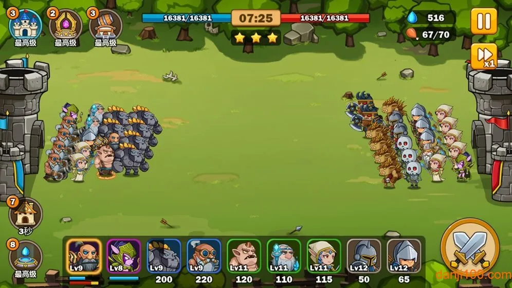 3、操作与成长体验:战场操作简单,且有聪明的AI让切磋更尽兴。游戏采用可收菜的成长方式,定时领取金币及扫荡关卡。玩家升级英雄到不同等级可解锁更强技能,不超过8分钟的对战时间,放置英雄用战术就能轻松击败敌人。