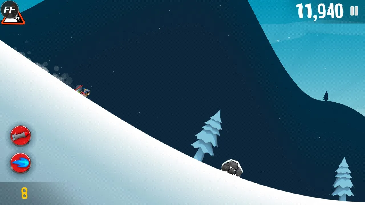 2、多样的角色与道具:拥有丰富人物角色和特色雪橇,多种滑行地图可挑战。玩家能升级角色、解锁新皮肤,雪橇外观更加酷炫。还有金币磁铁、冲刺火箭等神级道具可随心升级,助力滑雪冒险。