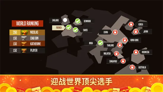 3、独特天赋与装备:独创天赋系统,玩家能随心所欲打造明星球员;还有精心设计的羽毛球配件及运动套装,不仅实用还能引领球场时尚潮流。