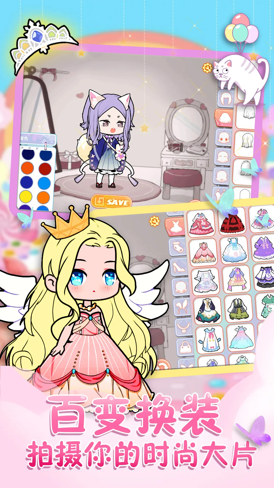 温馨治愈系的游戏画风和全新的换装玩法带来不一样的游戏体验,操作简单,更有各种不同的精美服饰随意搭配。