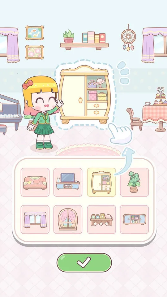 游戏画面可爱精美,装扮道具有超多选择,玩家可以自由对房屋进行装扮设计。