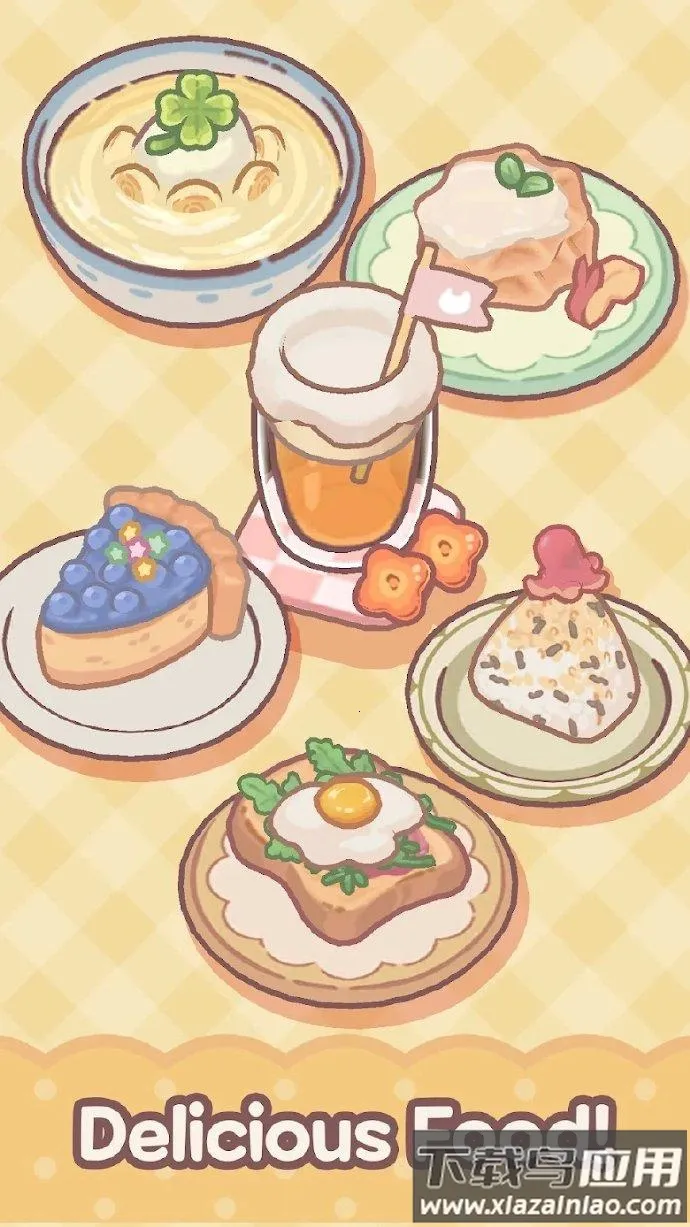 2、视听享受:游戏内背景音乐与音效设计精致,带来舒适的听觉氛围;画面风格清新可爱,采用卡通风格设计,柔和治愈,猫咪形象萌趣十足,食物造型生动诱人,场景设计细腻,营造出沉浸式体验。