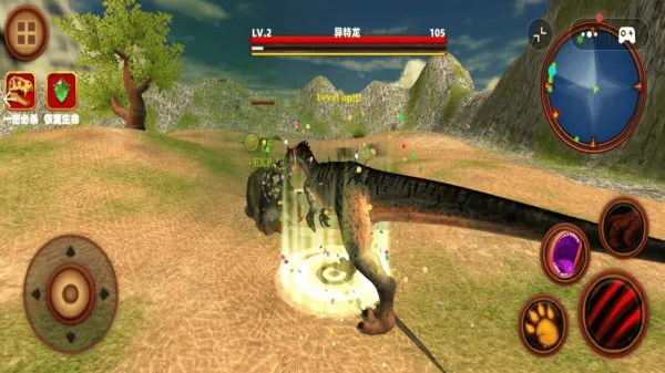 4、攻略方面,玩家猎杀恐龙获经验升级,根据等级选战斗对象,战斗中用技能获取食物,还能探索地图收集道具恢复状态、完成任务获奖励。该游戏适配一定安卓系统版本,安装包大小适中,安装简单,无内置恶意弹窗广告,下载稳定。