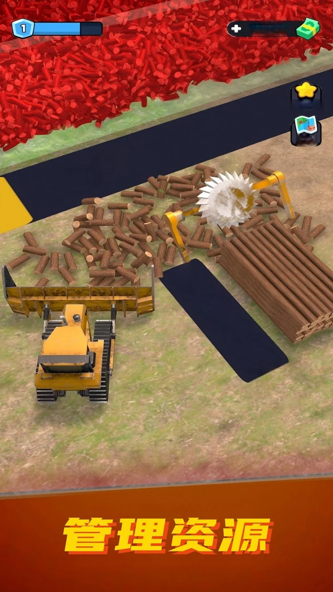 游戏从基础手动伐木开始,你能逐步掌握操作,将原木存入仓库,升级工具和设施。还能解锁加工设施,把原木变成多样材料用于建造房屋。它让你体验从伐木到建房的全过程,带来超棒的模拟经营乐趣,赶紧下载试试吧。