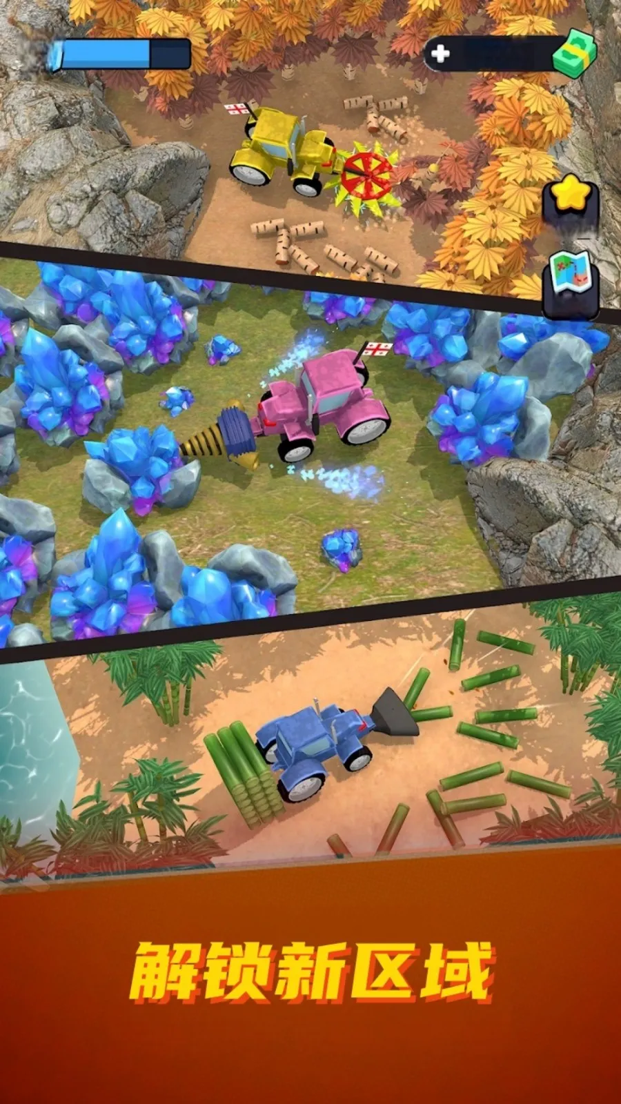 1、玩法自由多样,玩家能自由规划林场布局与产业方向,既可以专注深加工,也能多元发展,还能解锁建筑装修与角色装扮,打造出专属风格的木材帝国。同时,可从初始森林逐步解锁山脉和荒原等多样地形,每个场景都有专属树种与稀有资源,需要根据不同地形调整伐木策略。