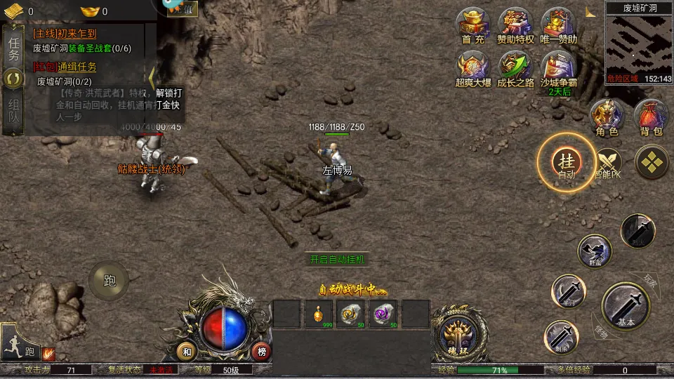 4、打金模式独特:打金版有新手、熟手和王者打金模式,不同等级获取金币不同;还有超级vip、无敌魂环、无限打金等特色,vip会员可享尊享特权。