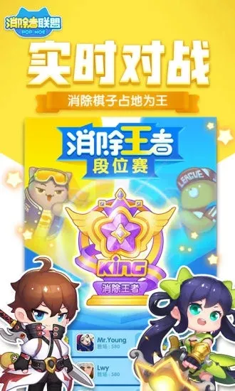 3、PVP玩法有趣,采用天梯机制,玩家随机匹配相近段位对手PK,共用地图回合制消除,每回合20秒思考时间,通过消除扩大领地,先占领80%地图或消灭对方棋子者获胜。