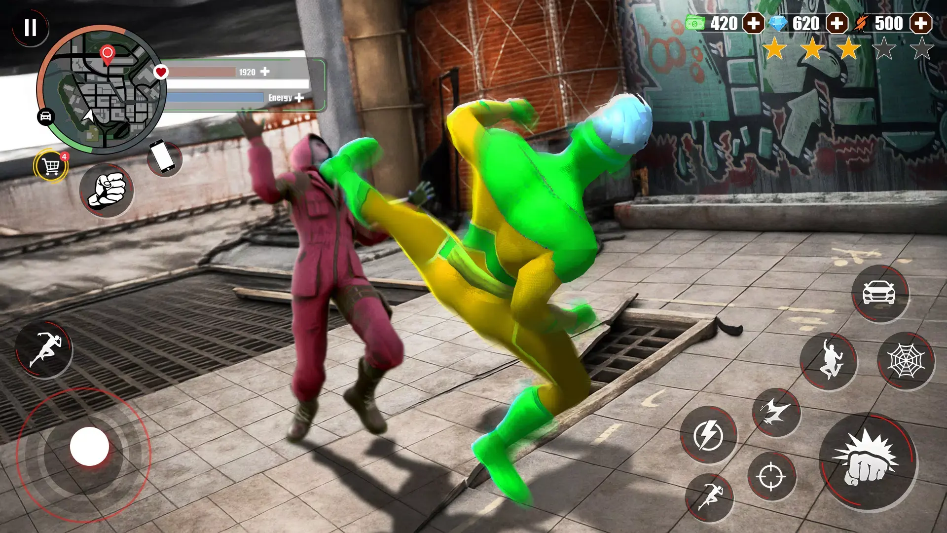 1. 《超级绳索英雄罪恶之城》玩法丰富多样,有线上战斗对抗、驾驶竞速等,操作简单,能轻松控制角色奔跑、跳跃、战斗,保卫城市和平。