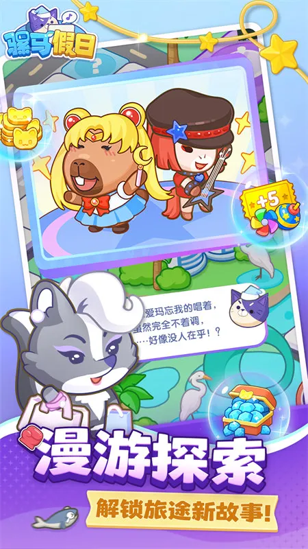 骡马假日是职场题材经营消消乐游戏,操作简单易上手。有数百关卡,通关解锁搞笑剧情,还有辅助工具助通关。设真人 PVP 对战,有可爱动物同事,色彩音乐舒适,定期更新保持新鲜。