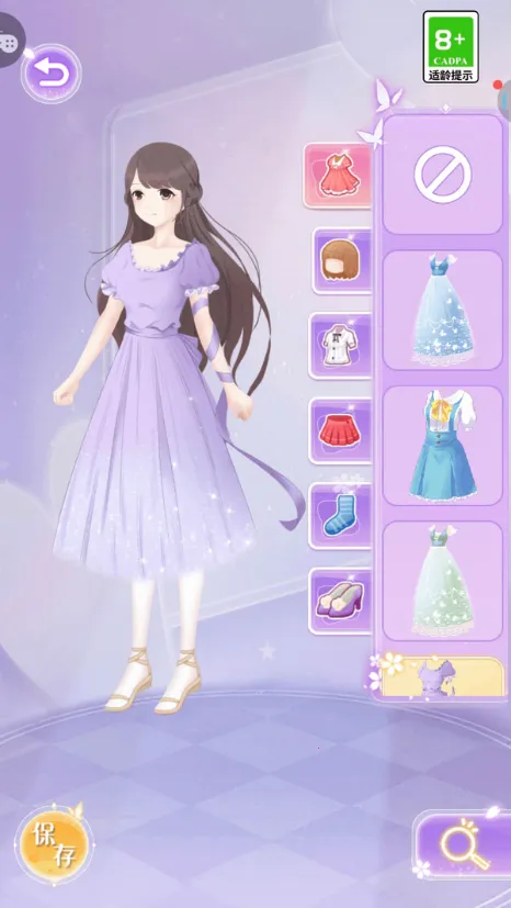 1.进入游戏后,玩家将来到一个梦幻的衣帽间,首先需要从数百套精美的服装、发型和配饰中自由挑选,为小公主搭配出独一无二的时尚造型。