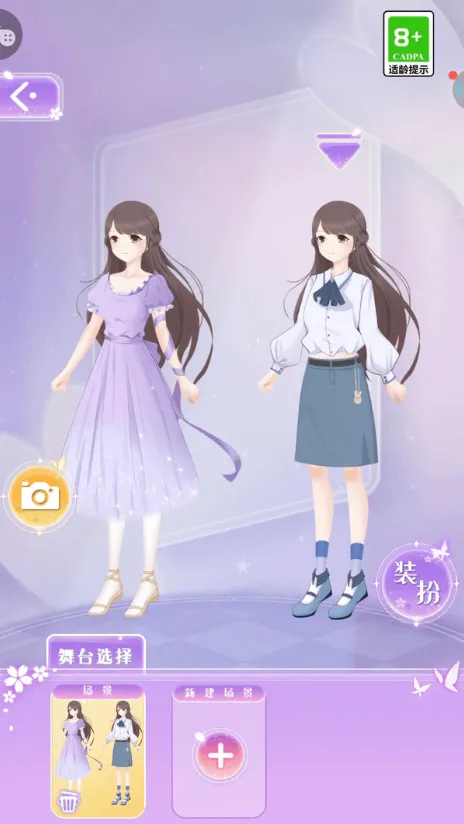 2.完成造型后可以进入摄影模式,从多个梦幻背景中选择心仪的舞台进行拍摄,调整灯光角度并添加特效,拍出专属于你的时尚大片。