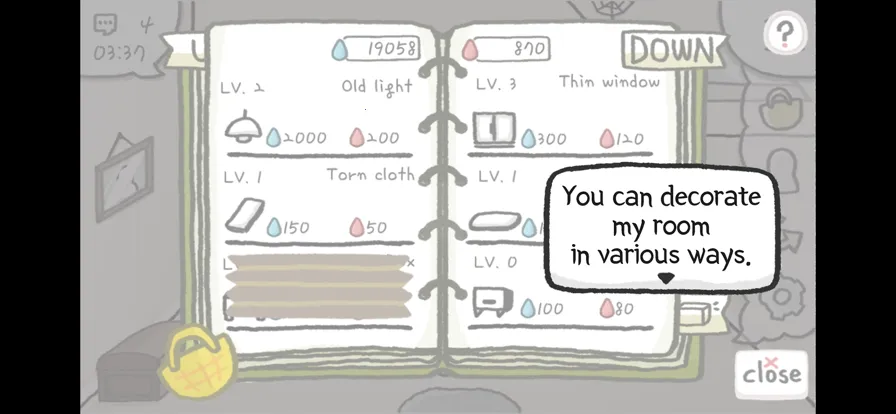 4、解谜与养成结合:玩家要在阁楼房间中寻找线索和道具,解开谜题找到出路,同时增加和游戏人物角色的亲密度,带着他迎接外面的阳光,帮助小人走出孤独与抑郁的阴影。