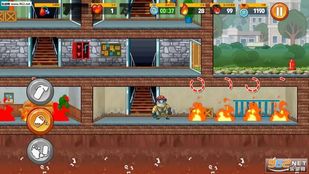 1. 游戏画面采用明亮卡通画风,能让玩家在轻松氛围中体验消防员日常工作,还可边玩边学消防知识。