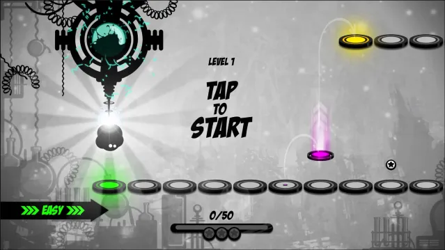 1. **操作体验**:延续标志性一键式操作,跟随动感节拍点击屏幕,操控小墨点飞跃尖刺、跨越高台,挑战障碍机关。单指控制,考验玩家对节奏的把握,像专业音乐大师一样精准点击,在每个阶段努力获得3星。