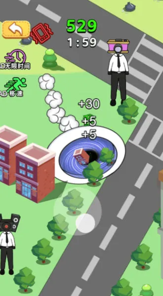 2. 玩法独特,能吞噬万物变强。手指滑动越快,争抢吞噬的东西越多,努力成为强大的黑洞王。