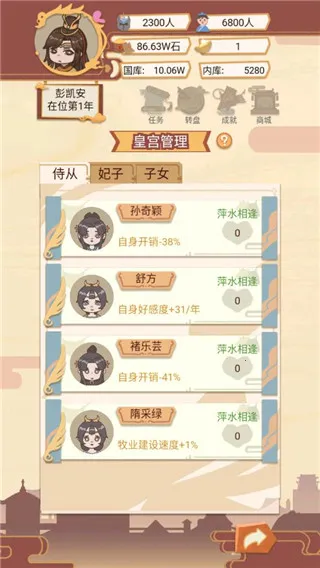4. **合理的系统设定**:从官员奏折到政务处理,再到人际关系管理,各个系统相互关联又层次分明。如通过处理奏折中的不同选项,影响清廉、军心、民心、税收等方面,让玩家深入体验治国之道。