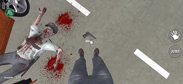 4、关卡内游荡者很多怪物,他们会向你发出进攻,为了防御他们你需要寻找到武器,找到武器后点击手掌按钮将其拾取