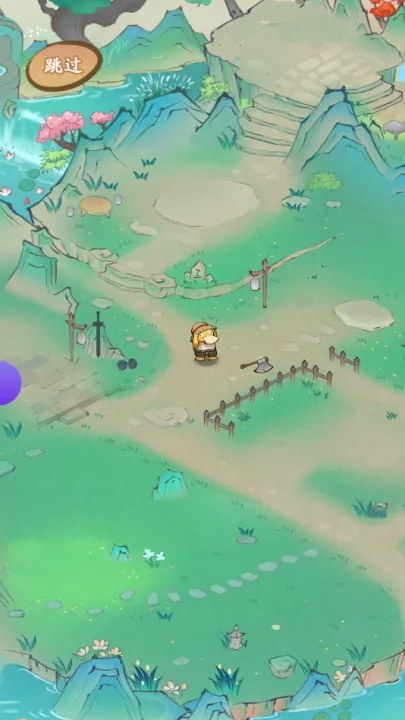 1、在游戏开始时,一座灵力雕像将变成一把石斧,指引你收集木材!只需轻轻点击,就能轻松获得木材。