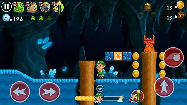 在这里,你能扮演小矮人lep,踏上拯救被巫师统治的矮人家族的冒险之旅。操作简单,左边按钮控制移动,右边向上箭头跳跃躲避障碍、撞开石头,上面发射按钮发射收集的坚果。每关有三个装满金币的大罐子,收集齐可三星通关。撞击特殊方块有几率获得道具,比如叶子能免伤三次,鞋子可加速,沙漏能延长通关时间。游戏还有13种难缠敌人和多个强大boss。快来体验这款游戏,在不同世界中尽情冒险,享受闯关乐趣,用各种道具技能应对挑战,拯救矮人家族吧!